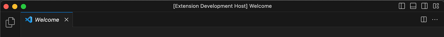 A new instance of VS Code is launched, with your extension enabled. You can confirm this in the title bar of the IDE: