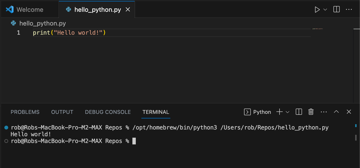 Now that our Homebrew package manager is in place, time to install Python. We will be using Python via Visual Studio Code later. Thanks to brew this will be fairly simple. A few things to keep in mind however: