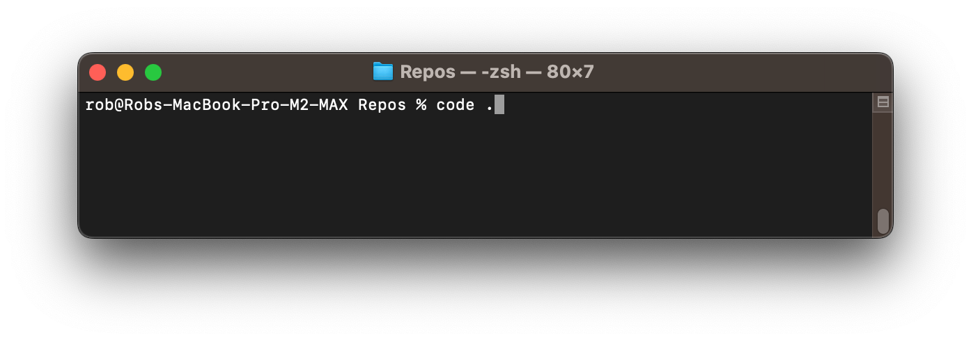 This tells Visual Studio Code to launch from inside the “Repos” directory.
