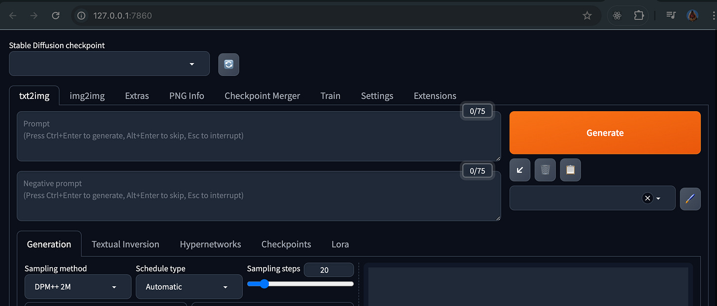 In the 'Stable Diffusion checkpoint' dropdown, select that model and let’s try it out. In this sample, using the txt2img feature, lets set: