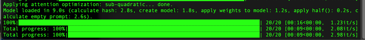 rob@Robs-MacBook-Pro-M2-MAX stable-diffusion-webui % ./webui.sh A lot of packages will initially be downloaded. If everything goes to plan, you will see something like this in your terminal: